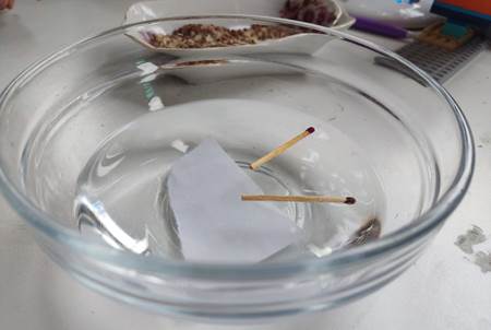 Возьмём кусок бумаги и положим в воду. Кусок бумаги со временем намокнет и утонет. А вот спичка из дерева, будет плавать на поверхности. Плавучесть, это следующее свойство вещества, которое я исследовал.