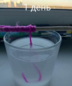 А вот, например, смешав воду и соль, мы не сразу увидим смешанное вещество. Дома я провел два эксперимента: смешал воду с солью и оставил смесь в стакане на подоконнике, предварительно опустив туда шерстяную нитку.