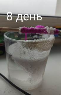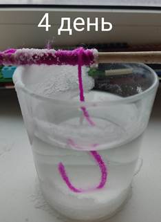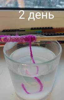 Уже на второй день, соль стала отделяться и оседать на шерстяной нитке.