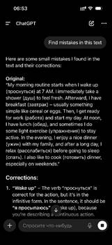 3. Проверяйте домашние задания: вставляйте текст в ChatGPT и спрашивайте:«Are there any mistakes?».
